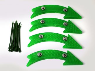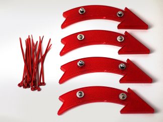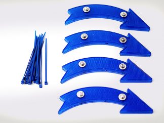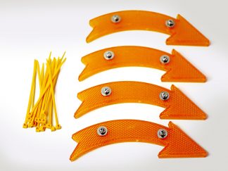 Die reflektierenden Speichen-Pfeile werden an jeweils zwei Speichen montiert, wobei hierbei Schrauben oder alternativ die beigelegten Kabelbinder verwendet werden können. Die Befestigung mit Kabelbindern haben wir uns ausgedacht und diese ist somit vom Hersteller nicht vorgesehen. Allerdings haben wir die Erfahrung gemacht, dass diese Art der Befestigung bei vielen Felgen besser funktioniert.